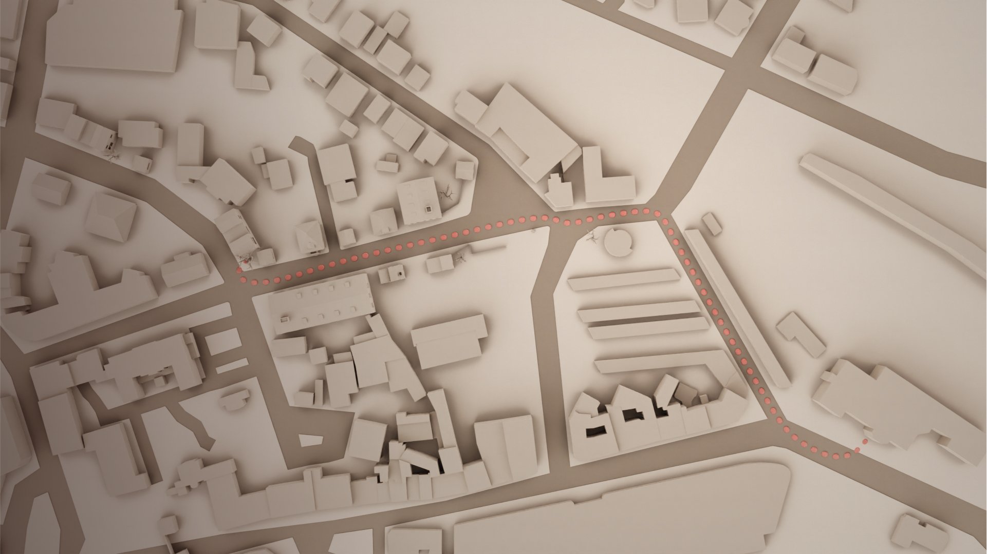Die Fotos wurden vor langer Zeit aus der richtigen Reihenfolge gerissen. Nur mit Hilfe der genauen Betrachtung der Gebäude entlang des Weges, den die Jüdinnen und Juden gehen mussten, können wir die ursprüngliche Reihenfolge entschlüsseln.